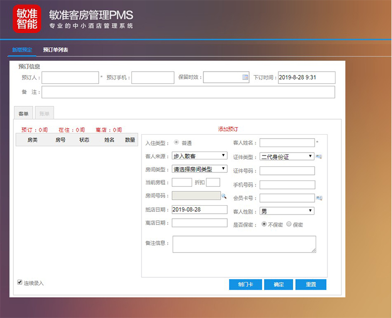 免费提供酒店控管理系统PMS